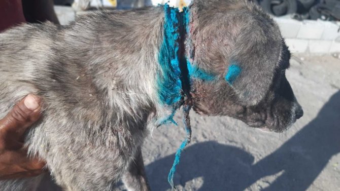 Gaziantep'in İslahiye ilçesinde bir köpeğin boynuna bağlanan naylon ip köpeğin boynunu kesti. Veterinere götürülen köpeğin boynuna 100 dikiş atıldı.