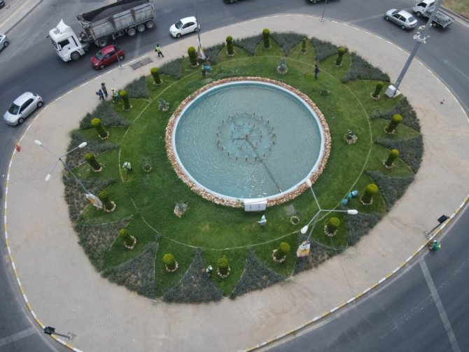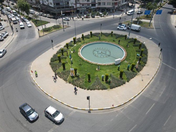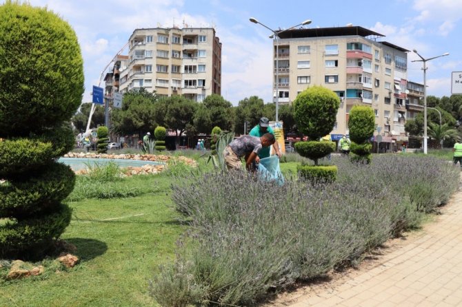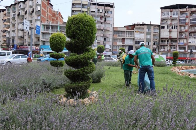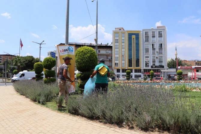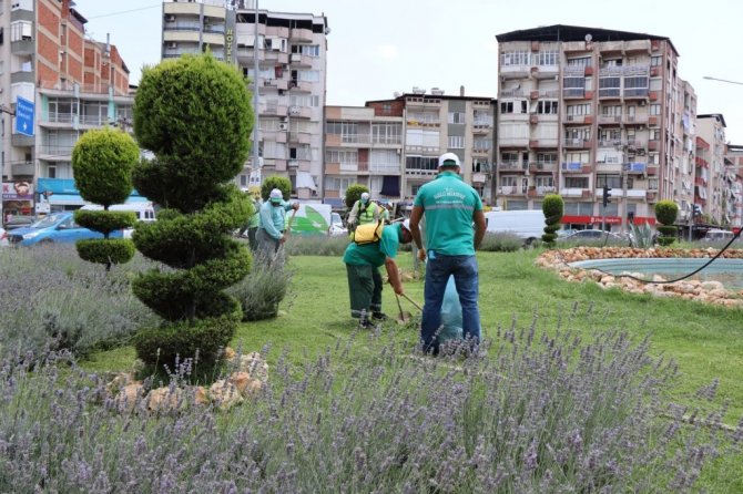 Nazilli Belediyesi kavşak ve refüjleri bakıma aldı