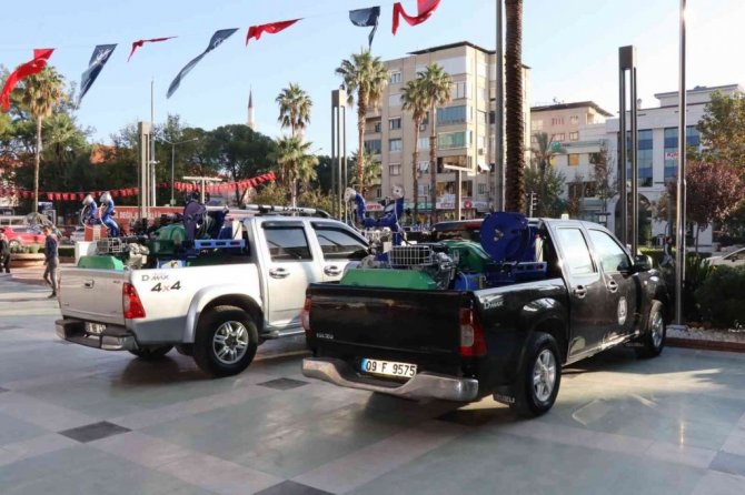 Nazilli Belediyesi Sağlık İşleri Müdürlüğü'ne kazandırılan 4 adet ilaçlama makinası ile larva ve sinekle mücadele çalışmalarına hız verildi.