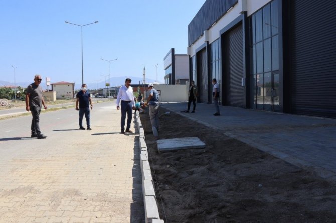Nazilli Belediyesi ekipleri, Nazilli Küçük Sanayi Sitesi Yapı Kooperatifi tarafından yapımı tamamlanan 18 adet dükkanın çevresine yaklaşık bin 500 metrekare kaldırım parke taşı döşemesi yaptı.