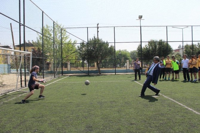 Açılış duasının okunmasının ardından açılış kurdelesini kesen protokol üyeleri, öğrencilerle top oynadı. Kaleye geçen Altıntaş Mahalle Muhtarı Şükrü Ustaoğlu’na Başkan Alıcık’ın şut çektiği anlar renkli görüntülere sahne oldu.