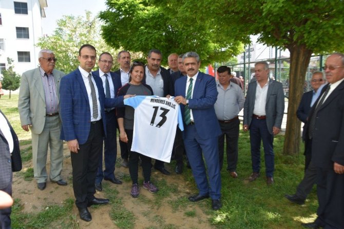Program sonunda, Okul Müdürü Ahmet Atay Başkan Alıcık’a Menderes Anadolu Lisesi forması hediye etti.