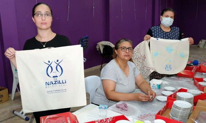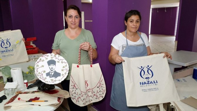 El Sanatları Öğretmeni Filiz Aydın; "Nazilli Belediye Başkanı Kürşat Engin Özcan öncülüğünde Belediye Sosyal İşler Müdürlüğü bünyesinde atölye kurduk. Şu anda Nazilli halkına yönelik dağıtılan çanlar başta olmak üzere çeşitli etkinliklerde kullanılmak üzere çanta ve porselen yapıyoruz. Bu çalışmalarda belediye personelimiz görev alıyor. Yapmış olduğumuz eserler çeşitli sosyal faaliyetlerde kullanılarak halkımızı dağıtılıyor. Sosyal Belediyecilik kapsamında hem ilçenin tanıtımı hem de vatandaşlarımıza verilen değerin bir göstergesi olarak geri dönüşümlü malzemelerden ürettiğimiz bu eserler yine halkımıza dağıtılıyor. El emeği göz nuru eserlerimizi halkımıza hediye ediyoruz" dedi.