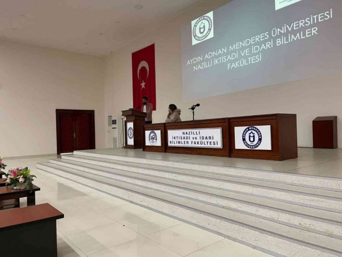 Nazilli İİBF'ne gezi ve bilgilenme amaçlı gerçekleşen ziyarette, Fakülte Dekanı Prof. Dr. Yusuf Kaderli ve Dekan Yardımcıları Doç. Dr. Engin Çakır ve Dr. Öğr. Üyesi Gülşah Sezen Akar'ın öncülüğünde Arş. Gör. Dr. Sadullah Çelik, Arş. Gör. Dr. Burcu Hiçyılmaz ve Arş. Gör. Kemal Özdemir, öğrencilere ADÜ'nün kuruluş ve tarihçesi, yönetim, amaç ve misyonları hakkında bilgi verdi.