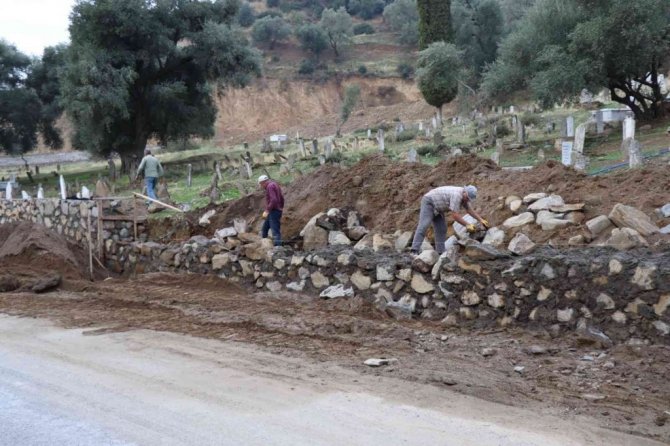 Nazilli Belediyesi Fen İşleri Müdürlüğü'ne bağlı ekipler Pınarbaşı Mahallesi Malhallı Mezarlığı mevkiinde istinat duvarı ile güçlendirme çalışmalarını tamamladı.