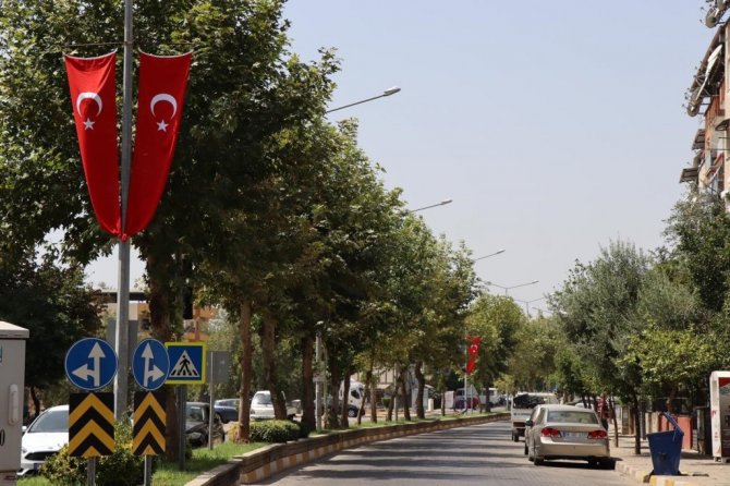 Sabah erken saatlerde çalışmalara başlayan ekipler, kentin en yoğun olduğu Belediye Meydanı, Uzun Çarşı ve ana caddeleri ay yıldızlı al bayraklarla süsledi.
