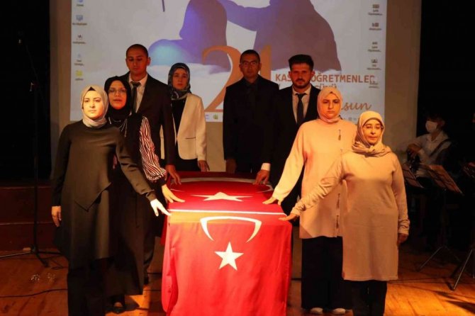 İstasyon Meydanı'nda bulunan Atatürk Anıtı önüne İlçe Milli Eğitim Müdürlüğü çelenginin sunulması ile başlayan tören, Mehmet Yüzügüler Kültür Merkezi Tiyatro Salonu'nda devam etti. Günün anlam ve önemine ilişkin konuşma yapan İlçe Milli Eğitim Müdürü İsmail Şimşek, "Cumhuriyetimizin kurucusu Gazi Mustafa Kemal Atatürk'ün 24 Kasım 1928 tarihinde Başöğretmenliği kabulünün anısına, 1981 yılından bu yana hep birlikte kutladığımız 24 Kasım Öğretmenler Günü'nü, bu yıl da aynı şevk ve heyecanla kutluyoruz. Öğretmenlik, emek, özveri, sabır ve hoşgörü isteyen, bedeli hiçbir maddi karşılıkla ölçülemeyecek kadar değerli, saygın ve gücünü sevgiden alan dünyanın en özel mesleklerindendir. Geleceğimizin teminatı çocuklarımızı yarınlara hazırlayan ve onların yetişmesinde fedakarca çalışan öğretmenlerimiz her türlü takdire fazlasıyla layıktır" dedi.