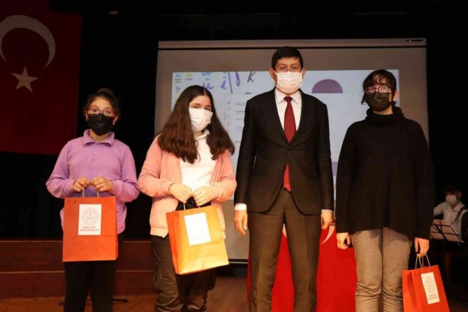Konuşmaların ardından 24 Kasım Öğretmenler Günü konulu kompozisyon, resim ve şiir yarışmasında dereceye giren ilk ve ortaokul öğrencilerine protokol üyeleri tarafından ödülleri verildi.