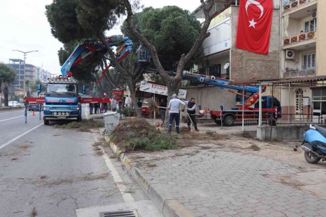 Nazilli Belediyesi Park ve Bahçeler Müdürlüğü ekipleri, Devlet Karayolu başta olmak üzere ilçe genelinde tehlike arz eden noktalarda ağaç budama işlemi...