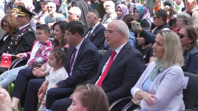Saygı duruşu ve İstiklal Marşı'nın okunmasıyla başlayan tören, İlçe Milli Eğitim Müdürü İsmail Şimşek, günün anlam ve önemini belirten bir konuşma yaptı. 23 Nisan'ın Türk Milleti için büyük öneme sahip olduğunu belirten Müdür İsmail Şimşek, "Bugün tarih boyunca esaret zinciri vurulamamış milletimizin bağımsızlığına kavuştuğu gündür. 23 Nisan 1920 "egemenlik ulusundur" diyerek yola çıkan aziz milletimizin kendi geleceğini belirlediği ve Atatürk'ün ülke bekasını milletimize bıraktığı gündür. TBMM'nin açılışı ile vatanın asil evlatları büyük bir bağımsızlık mücadelesine girişmiştir. Sevgili çocuklarım, bu bayramın size hediye edilmesi size görev ve sorumluluklar yükler. Aziz milletimizi korumak ve yüceltmek sizin en büyük görevinizdir. 23 Nisan Ulusal Egemenlik ve Çocuk Bayramınızı en içten dileklerimle kutluyorum. Gazilerimiz ve şehitlerimize Allah'tan rahmet diliyorum" dedi.