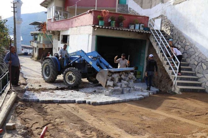 Deforme olan eski yolu baştan sona yenileyen ekipler, parke taşı döşeme çalışmaları ile olası can ve mal kaybının yaşanmasının önüne geçmiş oldu.