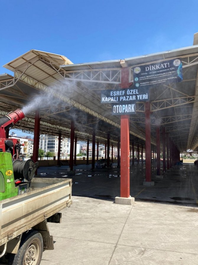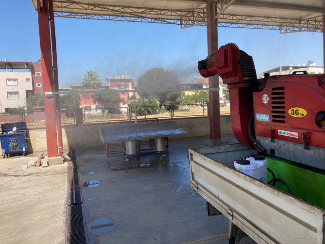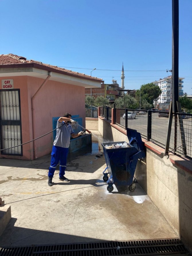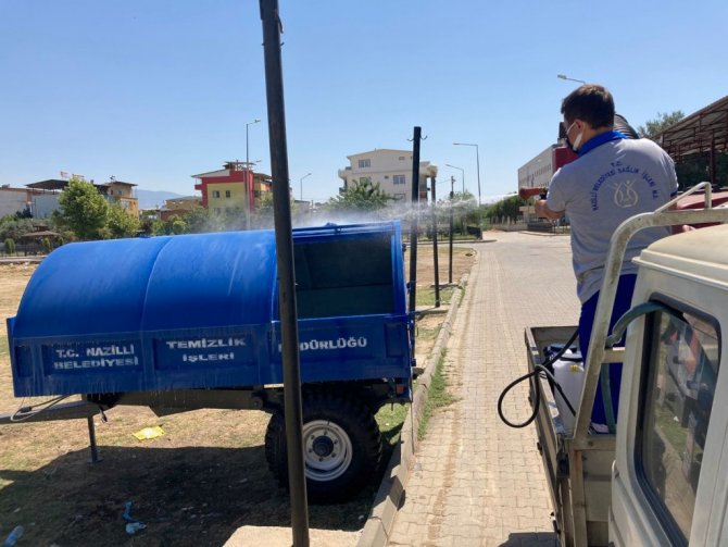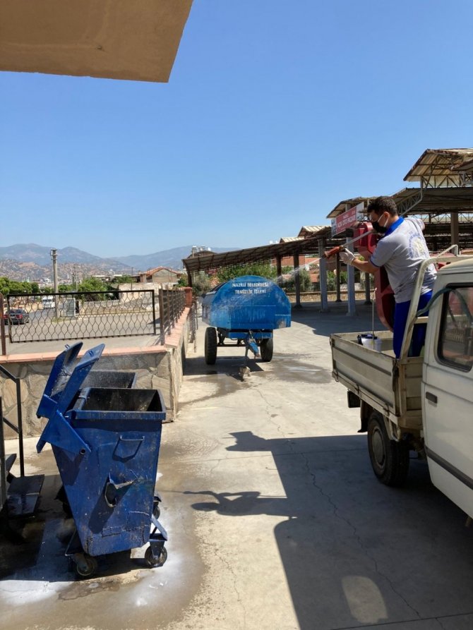 Nazilli Belediyesi, Kurban Bayramı'nda kesim yapılacak alanları dezenfekte etti.