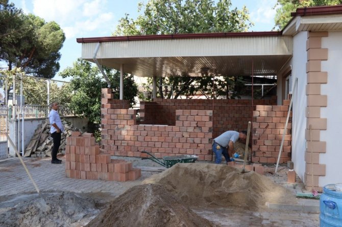 Fen İşleri Müdürlüğü'ne bağlı ekipler tarafından yürütülen çalışmalar kapsamında, beceri eğitimi kazandırılmamış öğrencilerin velileri için 20 metrekare alana gün boyu bekleme alanı oluşturuldu.