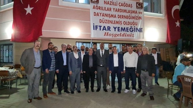 Nazilli merkez Yıldıztepe Mahallesi Muammer Hastepe Caddesi üzerinde bulunan dernek binası önünde buluşan ilçede yaşayan Ağrılılar, dayanışma ve kaynaşma iftarı ile büyük coşku yaşadı. Uzaktan ve yakından gelen Ağrılı hemşerilerine ev sahipliği yapan Çağdaş Ağrılılar Yardımlaşma ve Dayanışma Derneği ve Nazilli manavlar ve pazarcılar Odası başkanı Necmettin Karakaya ile dernek yönetim kurulu üyeleri, konukları ile tek tek ilgilendi. Oldukça samimi bir ortamda ve kalabalığa rağmen iftar anında bile herkesin rahatlıkla iftarı açtığı iftar buluşmasında titizlik dikkatlerden kaçmadı. Siyasi partilerin Aydın il ve Nazilli ilçe başkanları, yöneticileri ve üyelerinin yanısıra daire müdürleri, muhtarlar, oda başkanları, okul müdürleri ve davetliler organizasyondan duydukları memnuniyeti dile getirdi.