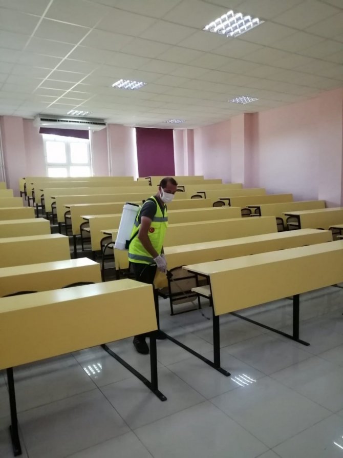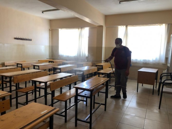 Cumartesi ve Pazar günü üç farklı oturumda sınavın uygulanacağı sınıflar, özel solüsyonlarla temizlendi. Ayrıca okullardaki merdiven trabzanlarından lavabolara kadar her köşe özenle dezenfekte edildi.