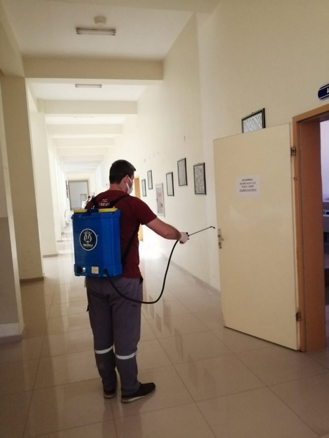 Nazilli Belediyesi, hafta sonu yapılacak olan Yükseköğretim Kurumları Sınavı(YKS) öncesi korona virüs tedbirleri kapsamında okullarda temizlik ve dezenfeksiyon çalışması başlattı.