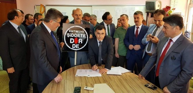 Eğitim-Bir-Sen Nazilli Temsilciliğine bağlı öğretmenler son günlerde eğitimcilere yönelik artan şiddete dur demek için imza topladı. İlçe merkezindeki Beşeylül İlkokulu’nun öğretmenler odasında gerçekleştirilen basın toplantısının ardından imza toplayan öğretmenler daha sonra ‘şiddet hayır’ sloganı atarak tepkilerini dile getirdi.