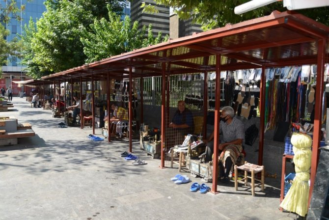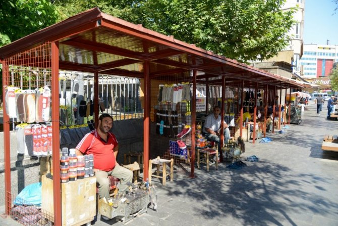 Diyarbakır Büyükşehir Belediyesi, yıllardır Nebi Cami önünde boya ve ayakkabı tamiri yapan esnafa, camiye engel olmayacak şekilde yeni lostra alanı yapıyor.