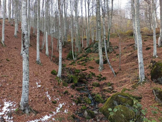 Karadeniz Bölgesi'nin eşsiz güzellikteki Nebiyan Dağı ziyaretçilerine sonbahar renkleri içinde görsel bir şölen sunuyor.