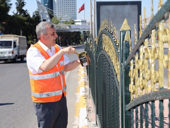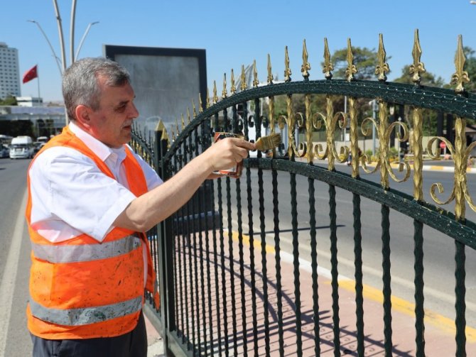 Yeni takılan ferforjeleri kendi elleriyle boyayan Şanlıurfa Büyükşehir Belediye Başkanı Zeynel Abidin Beyazgül, "Diyarbakır yolu üzerinde bulunan Necmettin Cevheri Bulvarı üzerindeyiz. Buradaki korkulukları buradan çıkararak Şanlıurfa'nın güzelliğine güzellik katacak, daha modern bir görünüme sahip olan yeni ferforjeleri buraya takıyoruz. Buradaki eski korkulukları da buradan sökerek Eyyüp Nebi'de inşa ettiğimiz sabır evlerinin etrafına monte ediyoruz. Orada çıkan ihalenin yüksek olması nedeniyle ihaleyi iptal ederek buradan söktüğümüz korkulukları orada değerlendireceğiz" diye konuştu.