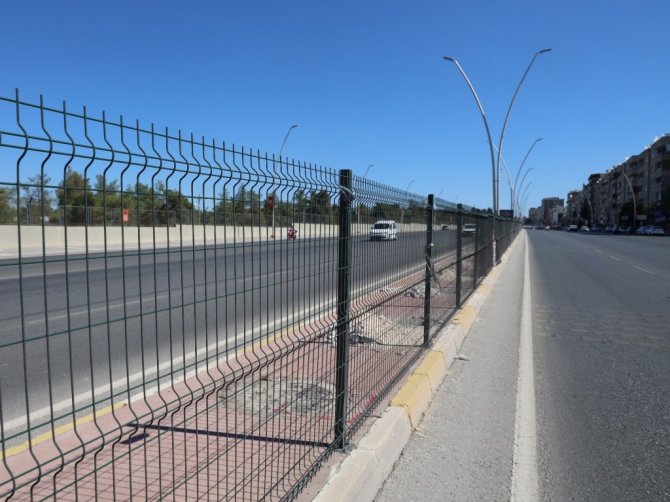 Şanlıurfa'nın önemli geçiş noktalarından biri olan Diyarbakır yolu Necmettin Cevheri Bulvarı'nda yolu birbirinden ayıran korkuluklar Şanlıurfa Büyükşehir...