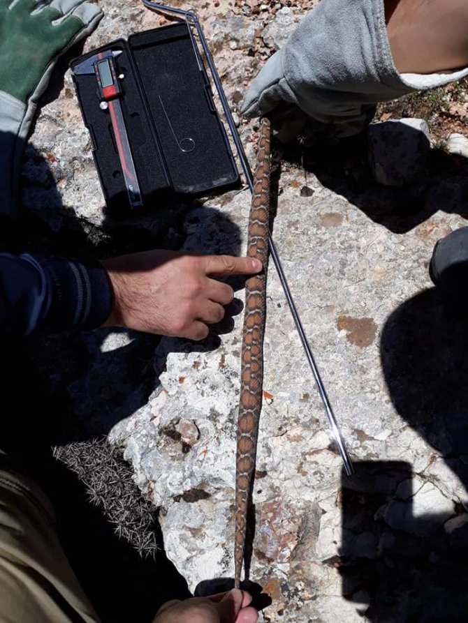 Sivas'ın Ulaş ilçesinde nesli tükenme altında olan "Beyaz Bantlı Dağ Engereği" görüldü.