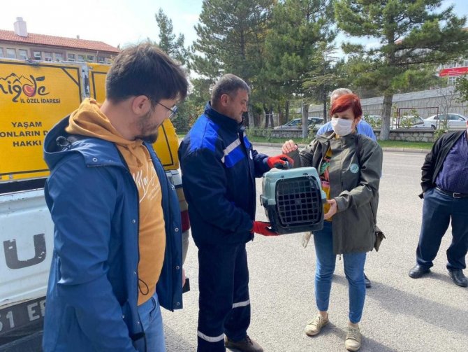 Niğde'nin Bağlama beldesinde vatandaşlar tarafından bulunan yaralı balaban kuşu Özel İdare ekiplerine teslim edildi. Özel İdare Veterineri tarafından muayene edilen kuşun ayağından yaralı olduğu belirlendi. İlk tedavisi yapılan balaban kuşu Milli parklar Müdürlüğüne teslim edildi.
