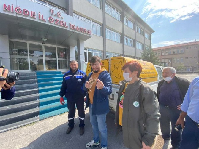 Niğde'de, dünyada nesli tükenmekte olan kuşlar listesinde yer alan ve koruma altında bulunan balaban kuşu köylüler tarafından yaralı halde bulundu.