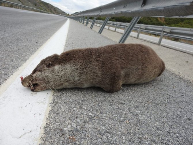 Nesli tükenmekte olan su samuru, aracın çarpması sonucu telef oldu