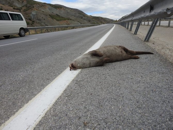 Erzincan-Erzurum kara yolu üzerinde nesli tükenme tehlikesi altında olan su samuru, aracın çarpması sonucu telef oldu.