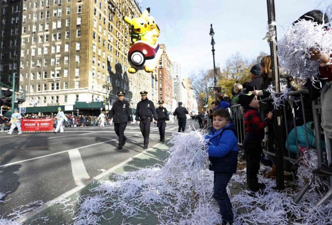 ABD'nin New York kentinde 1924'den bu yana her yıl düzenlenen Macy's Şükran Günü Geçit Töreni bu senede renkli görüntülere sahne oldu. Manhattan'da binlerce katılımcı ile düzenlenen geçit töreninde bando takımları, dansçılar performans sergilerken, onlarca dizi, film ve çizgi karakterin devasa balonları gökyüzünde yükseldi. Balonlar arasında, Bebek Yoda, Snoopy, Şirin Baba ve Pikachu gibi dünyaca ünlü karakterler yer aldı.