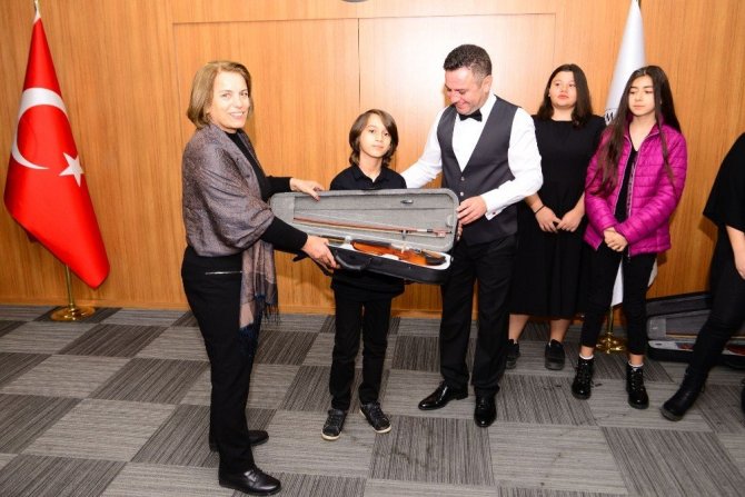 Konuşmaların ardından, öğrencilere enstrümanları Lütfiye Karakayalı, Belediye Başkan Yardımcısı Yusuf Kurt ve Kemalpaşa Belediyesi Kültür ve Sosyal İşler Müdürü Pelin Gören tarafından verildi.