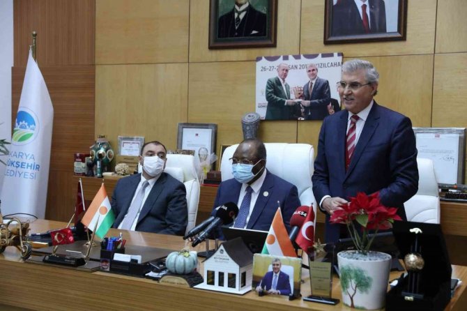 Yüce, konuşmaların sonunda Mahamadou'ya Sakarya'ya özgü ürün ve eserlerin yer aldığı hediyeler takdim etti. Nijer heyeti, Büyükşehir Belediyesi'nden mehteran ekibinin marşlarıyla uğurlandı.