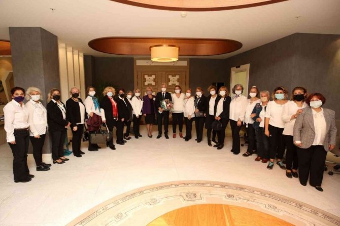 Nilüfer Kadın Korosu Şefi Dr. Aysel Gürel ve koro üyeleri, Nilüfer Belediye Başkanı Turgay Erdem'i makamında ziyaret etti.