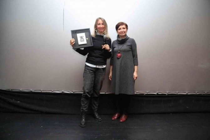 Söyleşinin ardından Nilüfer Belediyesi Kültür ve Sosyal İşler Müdürü Nejla Aslan, senarist ve yönetmen Leyla Yılmaz'a teşekkür ederek tablo armağan etti.