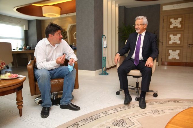 Nilüfer Belediyesi'nin Misi ve Gölyazı'da bulunan "Yazıevi"nden etkilenen ve yerinde incelemeye gelen Rusya Bilim ve Kültür Merkezi Başkanı Doç. Dr. Aleksandr Sotnichenko, Nilüfer Belediye Başkanı Turgay Erdem'i de makamında ziyaret etti.