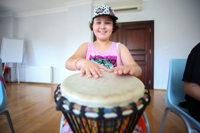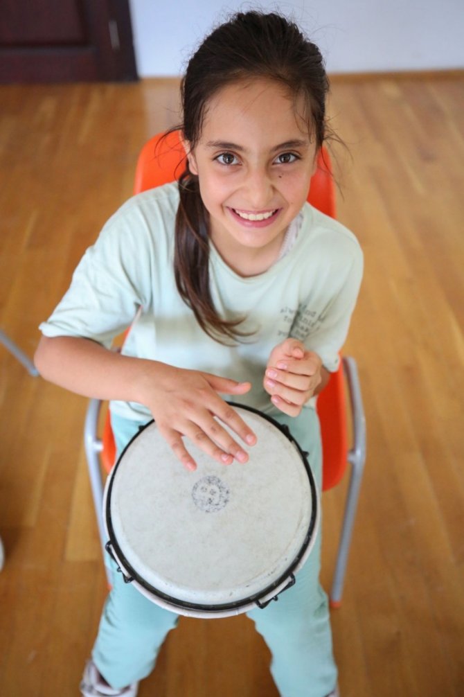 "Nilüfer'in Çocukları Sanatla Büyüyor" projesinin en keyifli atölyelerinden biri olan ritim atölyesine katılan çocuklar darbuka, djembe, shaker, marakas ve cowbell gibi enstrümanlarla tanışarak müzik yapıyor. Eğitmenler eşliğinde bu enstrümanları kullanan çocuklar, müzik yaparken takım çalışmasını da öğreniyor.