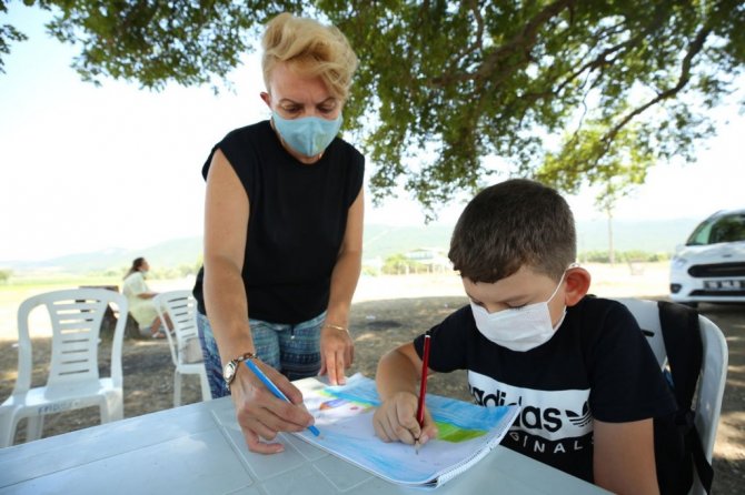 Hasanağa, Büyükbalıklı, Misi, Fadıllı, Konaklı, Üçevler ve Çalı Mahalleleri'nde ücretsiz olarak düzenlenen atölyelere katılım, pandemi nedeniyle sınırlı sayıda tutuluyor. Çocuklar, Nilüfer Belediyesi tarafından kendilerine verilen materyal ve enstrümanlarla atölyelerde hem eğleniyor hem öğreniyor.