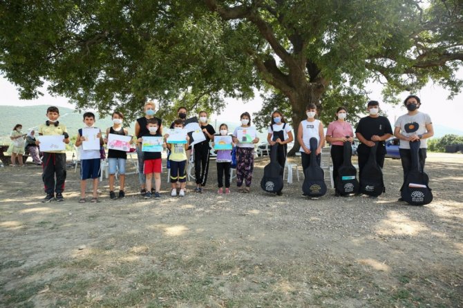 Nilüfer Belediyesi'nin kırsal mahallelerde gerçekleştirdiği "Nilüfer'in Çocukları Sanatla Büyüyor" projesine katılan çocuklar, resim atölyesinde kendini geliştirme fırsatı bulurken, gitar ve ritim atölyelerinde de yeni enstrümanlarla tanışıp müzik yapıyor.