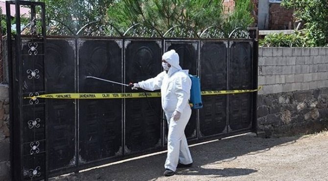 Hıfzıssıhha Kurulu kararınca alınan kararla birlikte Payas Belediyesi ekipleri tarafından dezenfekte edilen evlere giriş çıkış yasaklandı.