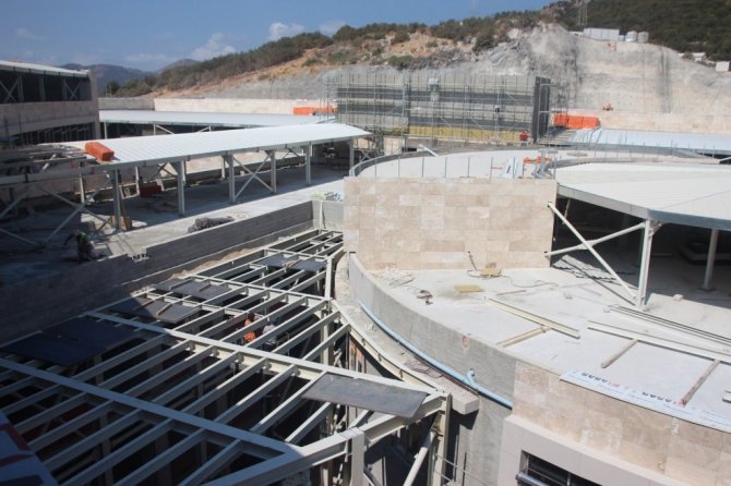 Nüfusu hızla artan Muğla'nın Bodrum ilçesinde Sağlık Bakanlığı tarafından yaptırılan Yeni Devlet Hastanesi'nde çalışmalar devam ediyor.