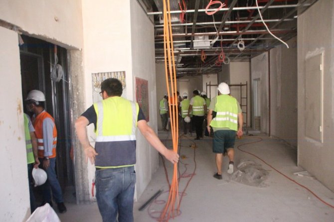 "150 yataklı hastanemizde 7 ameliyathane var. Bir tanesi kadın doğum ameliyathanesi, bir tanesi lokal ameliyathane. Yoğun bakım yatak sayısı 65. Poliklinik yatak sayısı 60. Hastanemiz bünyesinde bilgisayarlı tomografi, 5 adet röntgen, MR, tomografi var. Ayrıca 300 araç kapasiteli otopark, ilave olarak da 30 araçlık kapalı otoparkımız mevcut. Hastane şu anda yüzde 70 civarında tamamlandı. Yılsonuna doğru test ve devreye alma işlemlerini başlatmayı planlıyoruz."