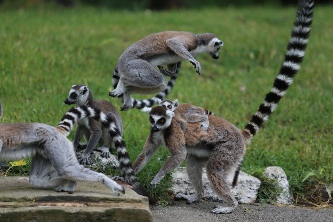 Yavruların ortama ayak uydurmasının kısa süreceğini belirten yetkililer, "Hayvanlarımız burada çok iyi şartlara sahip. Sık sık yavruları oluyor ve yakın zaman zarfında 4 yavrumuz dünyaya geldi. Onlara çok iyi bakıyoruz. Lemur ailesi kontrollü şekilde genişliyor" diye konuştu.