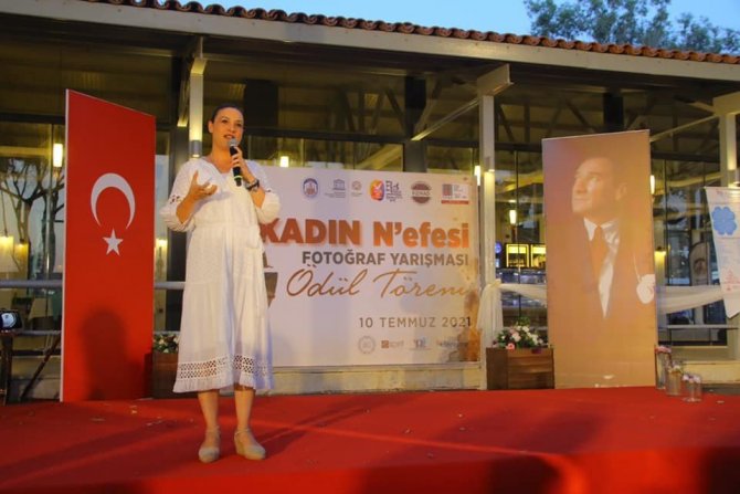 Türkiye'nin birçok ilinden 494 kişinin 1792 fotoğrafla katıldığı yarışmanın ödül töreninde konuşan İZİKAD Başkanı Betül Sezgin, kadınların iş dünyasında yer alması kadar kendilerini sanatla ifade etmesi de önemsediklerini belirterek, "Bu yıl altıncı kez çıktığımız fotoğraf yarışması yolculuğunda Selçuk Belediye Başkanı Filiz Ceritoğlu Sengel'in vizyonuyla antik dünyanın yedi harikasından biri olan Artemis Tapınağı, Celsus Kütüphanesi, Meryem Ana evi gibi geçmişin tüm izlerini titizlikle korumuş, her noktasında tarihi bir değeri hissedebileceğimiz Selçuk'ta, Türkiye'nin en uzun sahili Pamucak Sahili'ndeyiz. Bu topraklarda olmak çok heyecan verici" dedi. Kadın N'efesi temasının çok özel bir tema olduğunu belirten Sezgin, "Sayın Sengel bu yarışmanın isim annesidir. Kendisiyle sohbetimizde bu isim ortaya çıktı. Sayın Sengel ayrıca jüri üyelerimizden biriydi, Selçuk Belediyesi de yarışma fikri ortaya çıkmasından bugüne kadar hep yanımızdaydı. Bu süreçte bizlere destek olan herkese çok teşekkür ederim" diye konuştu.
