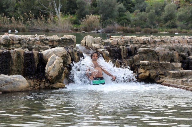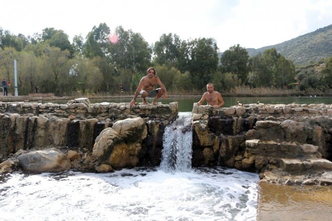 Muğla’nın Datça ilçesinde bulunan Ilıca Gölü, şifalı olduğuna inanılan kükürtlü suyu nedeniyle kış aylarında yerli turistlerin gözde mekanlarından biri haline geldi.