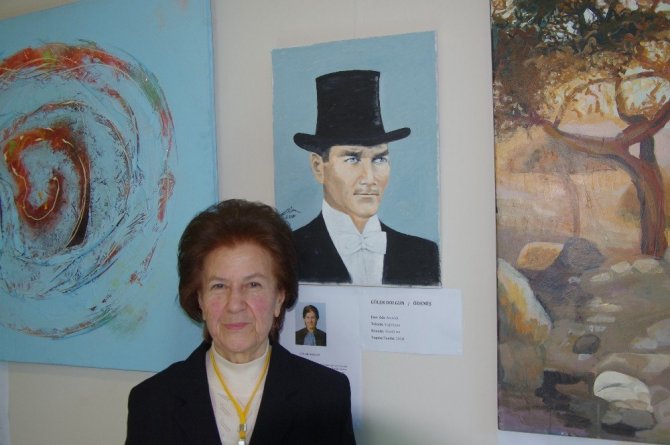 Yıldız Kent Arşivi ve Müzesi’nde açılan sergide 40 sanatçının eseri yer alıyor. Sergi 11 Kasım tarihine kadar açık kalacak. Ödemişli 85 yaşındaki Güler Dolgun yaptığı Atatürk eseri ile sergiye katıldı. 5 yıl önce kalp krizi geçirmesine rağmen Atatürk’ü çok sevdiği için kolları sıvayıp Atatürk posteri yaptığını belirten Güler Dolgun’un tablosu sergiye gelenlerin takdirini kazandı.
