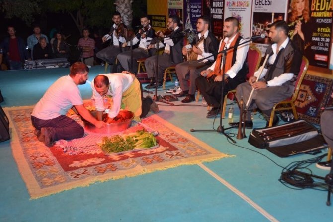 Türküler eşliğinde vatandaşlar ellerinde mendilleri ile halay çekerken, Urfalı sanatçı grubu sahnede çiğ köfte hazırladı. Türkü ezgileri altında hazırlanan çiğ köfte geceye katılan vatandaşlara ikram edilirken, Şanlıurfa’nın meşhur mırra kahvesi de sunuldu.