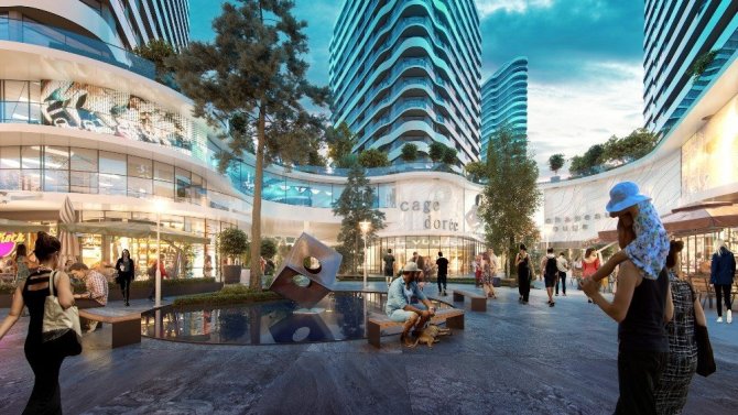 Sosyal donatılar ve ticari alanlar bir arada