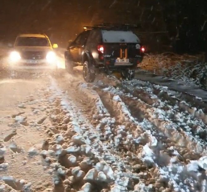 Balıkesir'in Susurluk ve Kepsut ilçeleri arasında yer alan Çataldağ'da dün akşam saatlerinde başlayan kar yağışında off-road'çular zor anlar yaşadı.