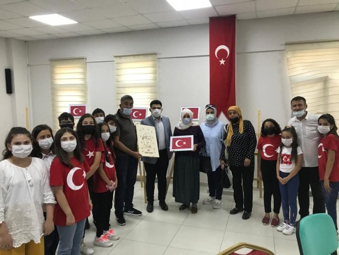 Kayseri Büyükşehir Belediyesi KAYMEK Sarıoğlan Sosyal Yaşam Merkezi'nde düzenlenen programda öğrenciler, Sarıoğlan İlçesinde bulunan tüm şehitlerin ahşap yakma tekniği kullanarak tablolarını yaptı. Yapılan tablolar Türk bayrakları ile beraber şehit yakınlarına hediye edildi. Kur'an-ı Kerim tilaveti ile başlayan törende, şiirler okundu ve öğrenciler marifetlerini sergiledi.